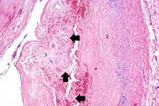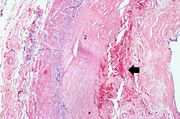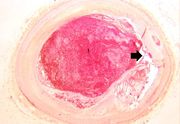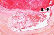 | 16:36, 19 August 2013 | IPLab4Thrombosis3.jpg (file) | 81 KB | Seung Park | This is a higher-power photomicrograph of the ruptured fibrous cap (arrows) with hemorrhage (1) into the atherosclerotic plaque. | 1 | |