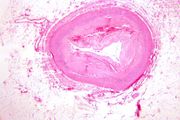 | 16:40, 19 August 2013 | IPLab4Thrombosis7.jpg (file) | 50 KB | Seung Park | In this low-power photomicrograph of another coronary artery from this patient, a mural thrombus has undergone re-organization. The mural thrombus has been invaded by the in-growth of fibroblasts and small blood vessels from the wall of the artery. The... | 1 | |