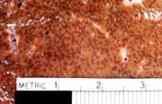 | 16:19, 19 August 2013 | IPLab4ChronicPassiveCongestion2.jpg (file) | 44 KB | Seung Park | This is a closer view of a cut section of liver demonstrating the pattern of chronic passive congestion. The central vein regions are red and the surrounding hepatic tissue is pale tan-brown. | 1 | |