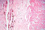 | 16:35, 19 August 2013 | IPLab2Calcification6.jpg (file) | 39 KB | Peter Anderson | Metastatic calcification is only one of two forms of pathologic calcification. Unlike metastatic calcification, dystrophic calcification does not require an increase in serum calcium levels. This is a gross specimen of a heart with dystrophic calcifica... | 1 | |