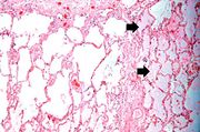 | 16:12, 19 August 2013 | IPLab4PulmonaryCongestion7.jpg (file) | 82 KB | Seung Park | This high-power photomicrograph illustrates the edema fluid within the alveoli (1) and the congestion (RBCs) in the alveolar capillaries (arrows). | 1 | |