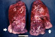 | 16:06, 19 August 2013 | IPLab4PulmonaryCongestion1.jpg (file) | 64 KB | Seung Park | This is a gross photograph of lungs that are distended and red. The reddish coloration of the tissue is due to congestion. Some normal pink lung tissue is seen at the edges of the lungs (arrows). | 1 | |