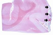 | 03:46, 21 August 2013 | IPLab9BacterialMeningitis2.jpg (file) | 30 KB | This is a low-power photomicrograph of brain section. Note the exudate (1) in the meninges and congestion of the vessels (2) in the leptomeninges. | 1 | |