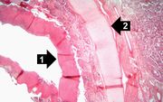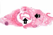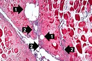 | 03:57, 21 August 2013 | IPLab9Clostridium6.jpg (file) | 55 KB | This higher-power photomicrograph of the previous image provides a clearer view of gas bubbles in the tissue, the necrotic hypereosinophilic muscle cell (1), and the mild inflammatory reaction (2). At this magnification, the bacteria located throughout... | 1 | |