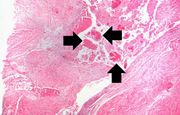 | 03:52, 21 August 2013 | IPLab9ARF3.jpg (file) | 83 KB | This is a higher-power photomicrograph of myocardium showing cellular accumulations--Aschoff bodies (arrows)--within the interstitium of the myocardium. These are found especially around blood vessels. | 1 | |