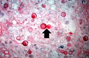 | 04:11, 21 August 2013 | IPLab10Crypto6.jpg (file) | 77 KB | This is a high-power photomicrograph of the cryptococcal lesion. Some of the organisms have been expelled during processing, but some cryptococcal organisms can be seen (arrows). | 1 | |