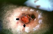 | 04:57, 21 August 2013 | IPLab11Leishmaniasis1.jpg (file) | 34 KB | In this photograph of the skin lesion seen in this patient, note the raised edges (arrows) and the ulcerated center. | 1 | |