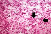 | 04:58, 21 August 2013 | IPLab11Leishmaniasis2.jpg (file) | 13 KB | This is a low-power photomicrograph of the biopsy taken from this skin lesion. The ulcerated surface is at the top. Note that the specimen is heavily infiltrated with inflammatory cells. | 1 | |