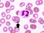 | 04:55, 21 August 2013 | IPLab11Malaria3.jpg (file) | 22 KB | This is yet another high power photomicrograph of a thin smear of blood from this patient. There is one RBC that contains two ring stage trophozoites (arrow). This is characteristic of, but not diagnostic for, P. falciparum. | 1 | |